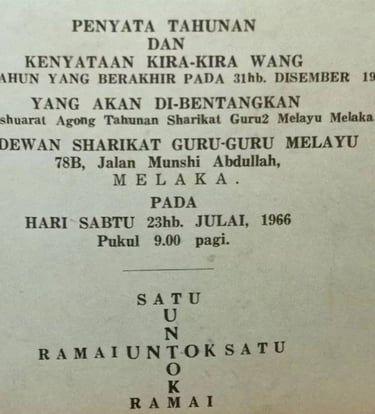 Koperasi Guru Melayu Melaka (KAGUM) ditubuhkan pada 19 Januari 1926 dengan nama asal Sharikat Guru-Guru Melayu Melaka. KAGUM bermula dengan motto yang cukup bermakna iaitu "Satu Untok Ramai, Ramai Untok Satu," yang menekankan semangat kolektivisme dan perpaduan di kalangan guru-guru Melayu pada masa itu.